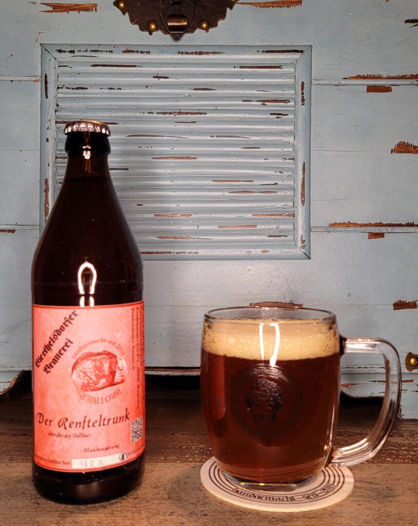 Wird obergärig vergoren nachdem es mit Münchner und karamellisierten Spezialmalz eingebraut wurde. Um nicht süß daher zukommen, erfolgt eine Hopfung mit Magnum und Hallertauer Mittelfrüh. Stammwürze 14°P Alkohol 5,6%vol.